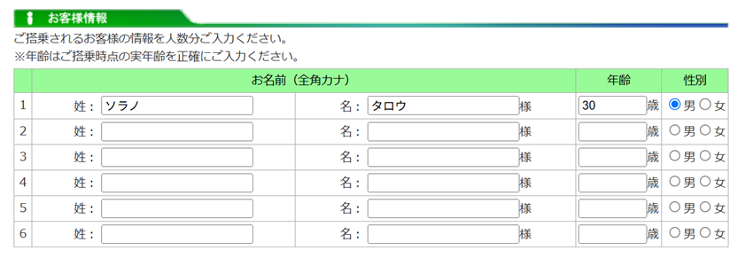 | ご搭乗日時点での年齢 |